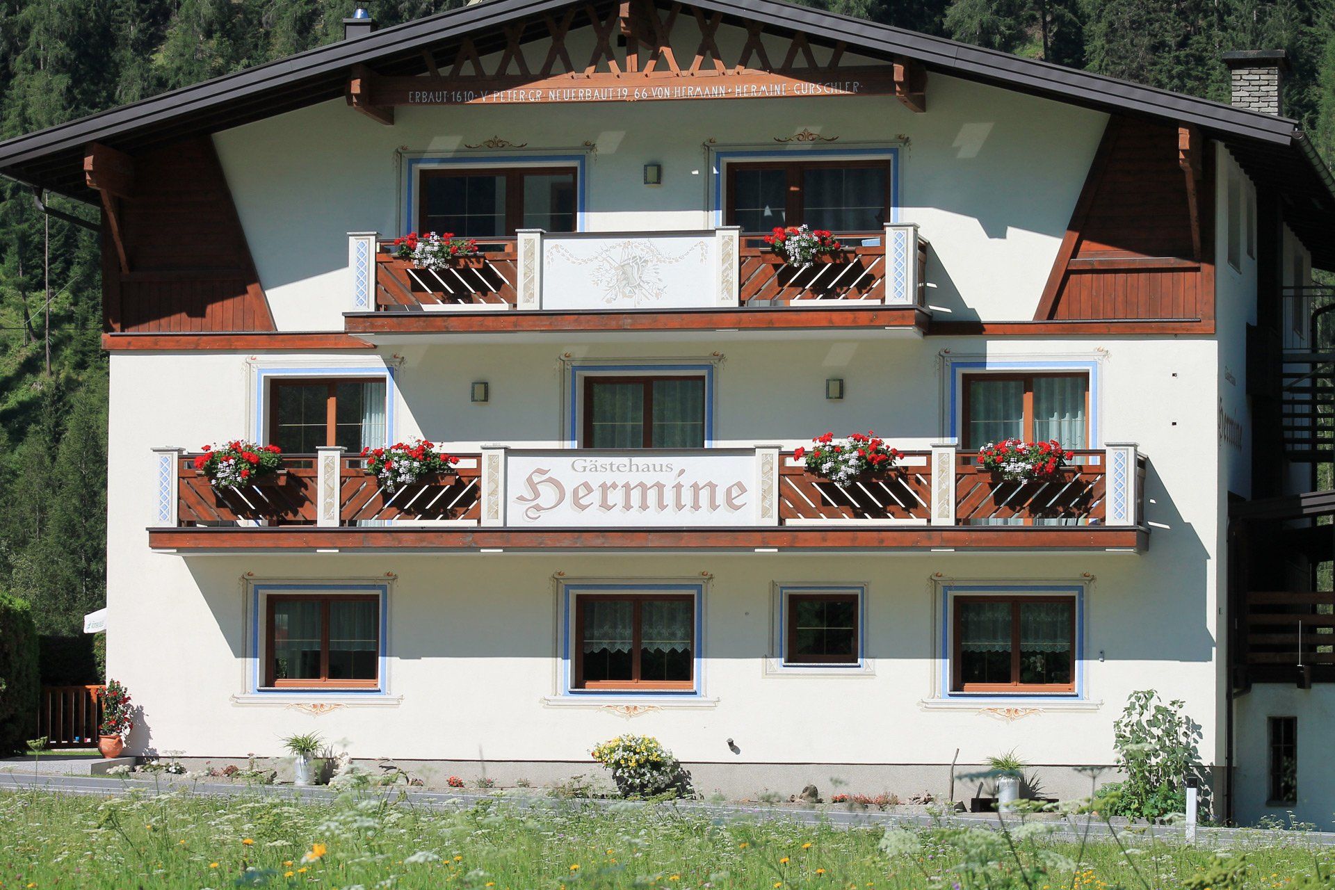 Das Selbstversorgerhaus Haus Hermine verfügt über 5 Zimmer (Mehrbettzimmer möglich), die alle mit Bad/WC, Sat/TV sowie mit Balkon ausgestattet sind.